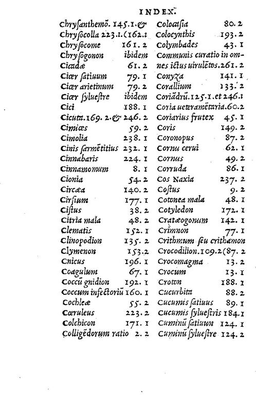 Pedacii Dioscoridis Anazarbei De medicinali materia libri quinq[ue] : De virule[n]tis animalibus, et venenis cane rabioso, ac remediis libri quattuor
