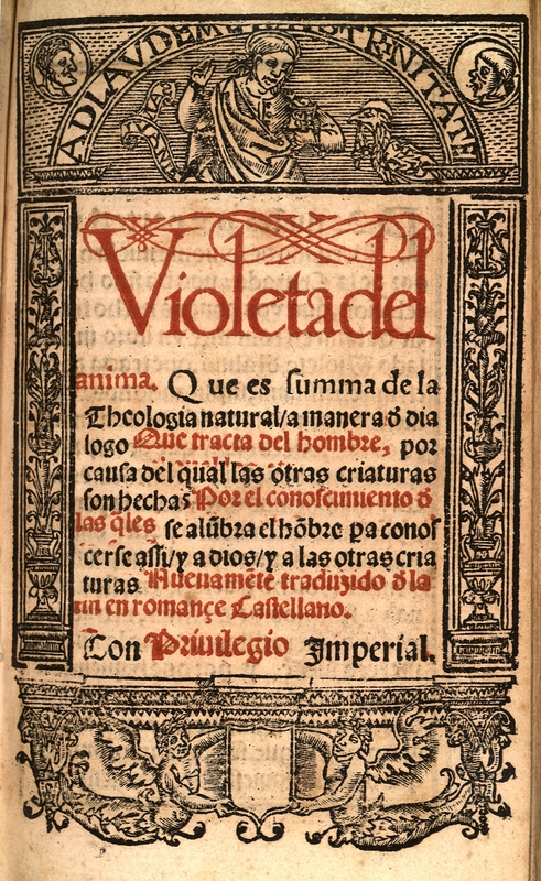Violeta del anima que es suma de la Theologia natural a manera d[e] dialogo que tracta del hombre, por causa del qual las otras criaturas son hechas : Por el conoscimiento d[e] las q[ue] las se alu[m]bra el ho[m]bre p[ar]a conoscerse assi y a Dios y a las otras criaturas