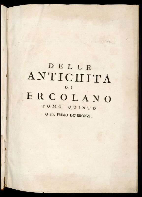 - Nota al título: Tít. en antep.: "Delle antichita di Ercolano Tomo quinto o sia Primo de' bronzi"