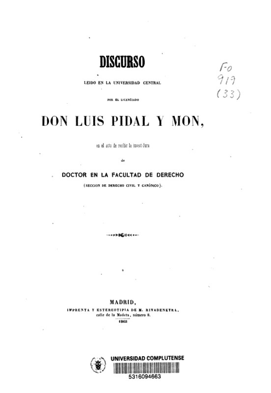 - Tesis inédita de la Universidad Central (Madrid), Facultad de Derecho, Sección de Derecho Civil y Canónico, leída el día 15-04-1886