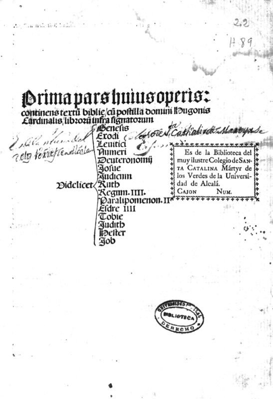 - Prima pars huius operis : continens textu[m] bible cu[m] postilla domini Hugonis cardinalis ..