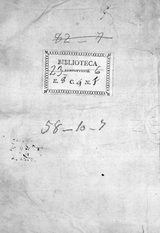 - Etiqueta impresa de la Biblioteca Complutense de Alcalá de Henares. - Ex libris ms. de la Librería de la Compañía de Jesús de Alcalá de Henares en la portada. - Ingresó en la Biblioteca Histórica procedente de la Facultad de Filología en 2000. - Encuadernación de pergamino.