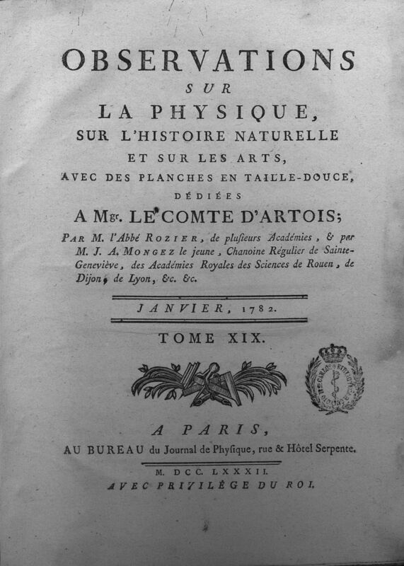 Observations et Memoires sur la Physique, sur L'Histoire Naturelle et sur les Arts et Métiers : avec des planches en taille - douce, .. ‐ [T. 19 (1782 janv.-juin)]