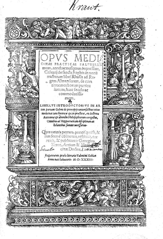 Opus medicinae practicae saluberrimum, antehac nusquam impressum, Galeatij de Sancta Sophia in nomu[m] tractatum libri Rhasis ad regem Almansorem de curatione morborum particularium... : Libellus introductorius in artem paruam Galeni de principiis vniuersalibus totius medicinae tam teorice quam practice .. ‐ [Ej. 2]