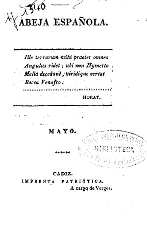 - Periódico semanal perteneciente al sector de prensa liberal avanzada que alcanzó gran popularidad. Fue redactor el erudito Bartolomé José Gallardo. Es un ejemplo de periodismo satírico que tan amplio cultivo tuvo a lo largo del siglo XIX en la ciudad de Cádiz. Fueron muy populares sus sátiras contra la Inquisición a la que llamaba “Freidero”, “Tostadero” o “Santa Chicharra”. Al trasladarse las Cortes ordinarias a Madrid se empezó a publicar allí en 1814 con el título “La Abeja Madrileña”. (Biblioteca Nacional de España)