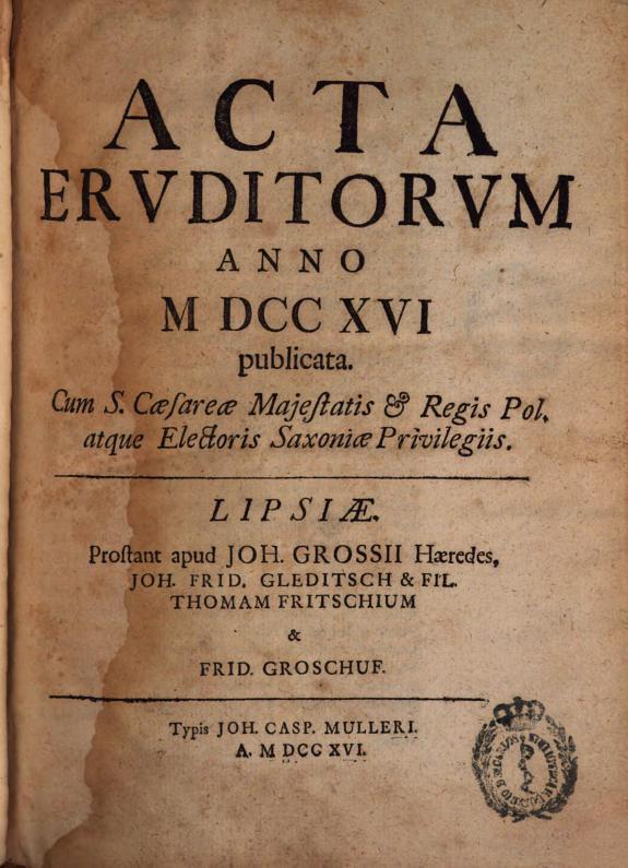 Acta eruditorum : anno ... publicata ‐ [Año 1716]