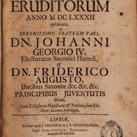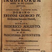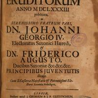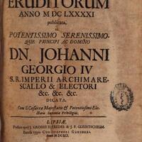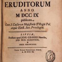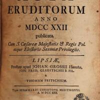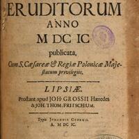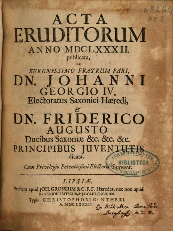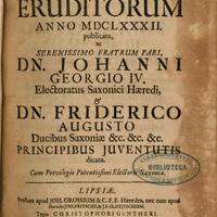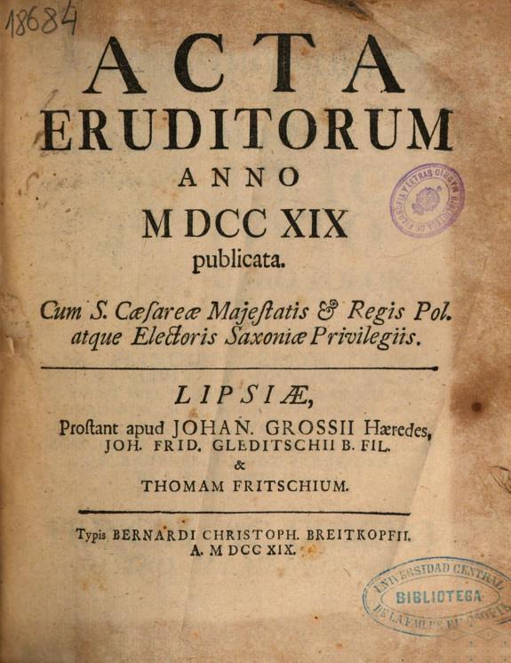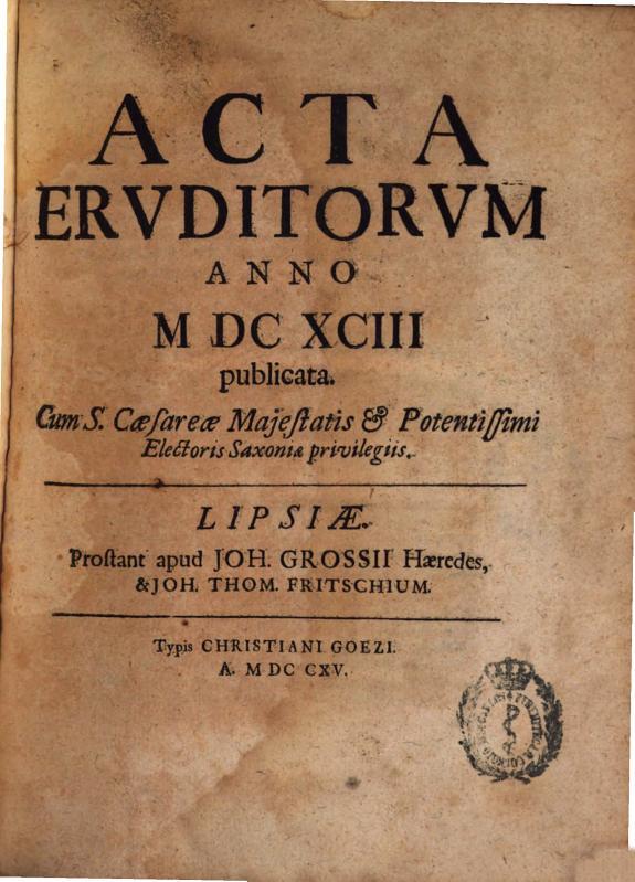 - Nota a la edición: El pie de imprenta cambia a partir del año 1692: "Prostant apud Joh. Grossi haeredes & Joh. Frid. Gleditschium: typis Johannis Georgi"; "Prostant apud Joh. Grossi haeredes & Joh. Thom. Fritschium: typis Christiani Goezi"; "Prostant apud Joh. Grossi haeredes & Joh. Thom. Fritschium: typis Johannis Georgi"