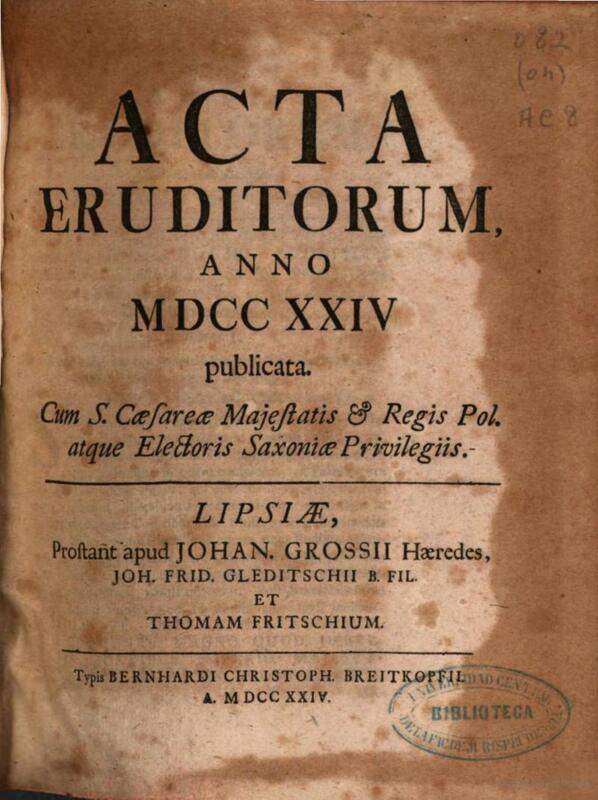 Acta eruditorum : anno ... publicata ‐ [Año 1724]