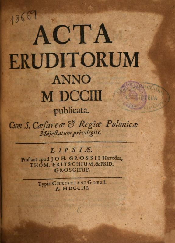 Acta eruditorum : anno ... publicata ‐ [Año 1704]