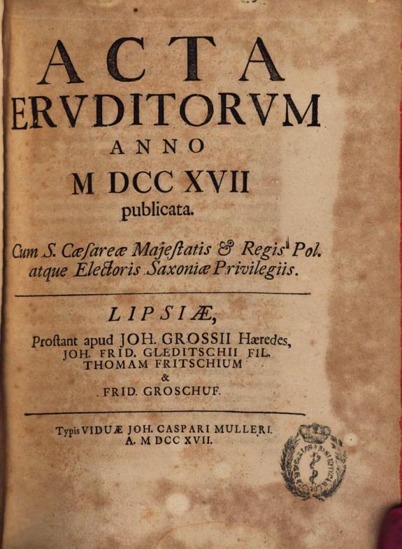 Acta eruditorum : anno ... publicata ‐ [Año 1717]