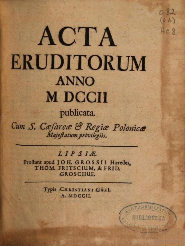 Acta eruditorum : anno ... publicata ‐ [Año 1702]