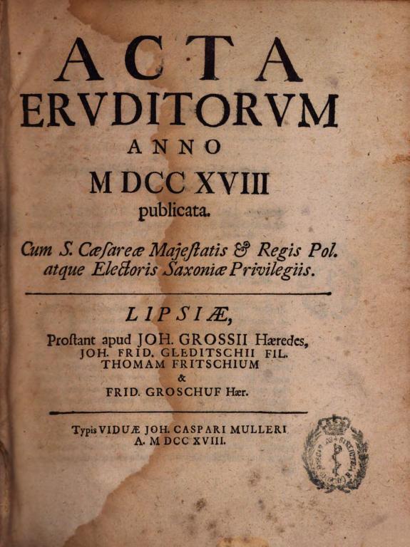 Acta eruditorum : anno ... publicata ‐ [Año 1718]
