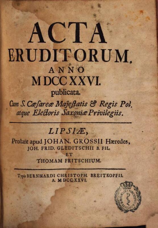 Acta eruditorum : anno ... publicata ‐ [Año 1726]