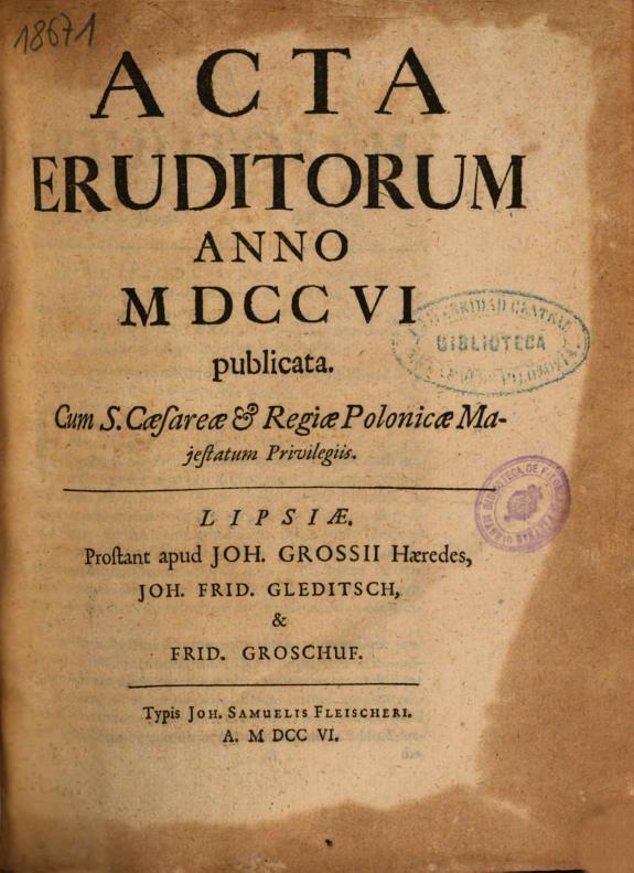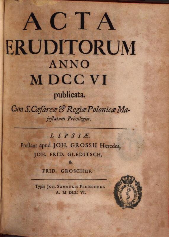 Acta eruditorum : anno ... publicata ‐ [Año 1706]