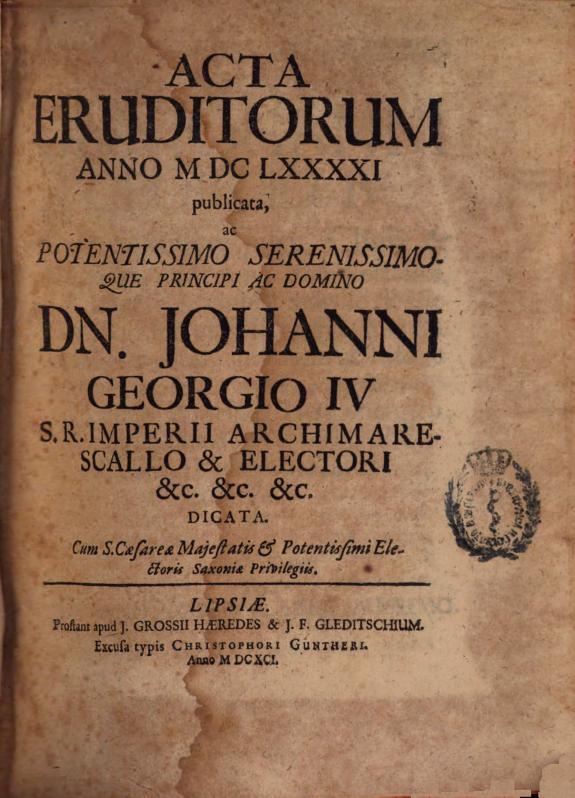 Acta eruditorum : anno ... publicata ‐ [Año 1691]