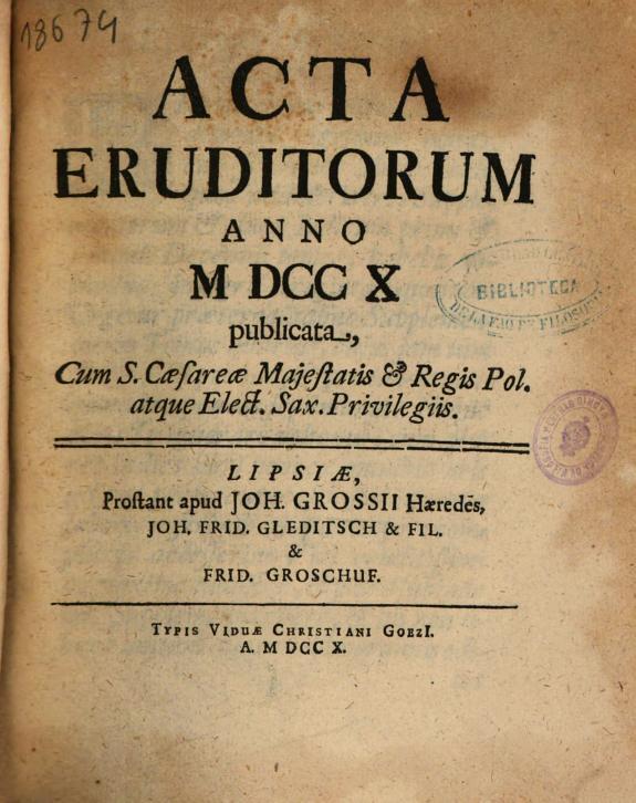 Acta eruditorum : anno ... publicata ‐ [Año 1710]