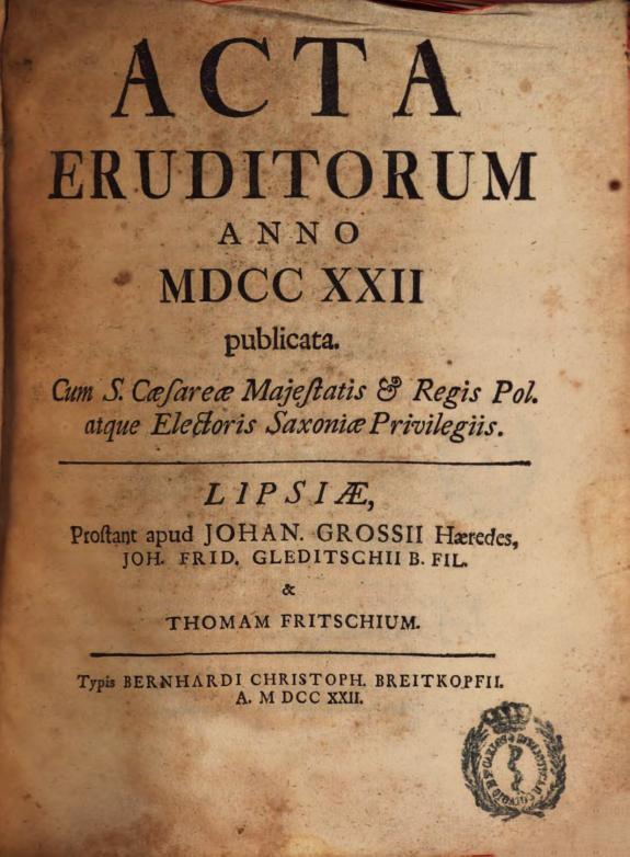 Acta eruditorum : anno ... publicata ‐ [Año 1722]