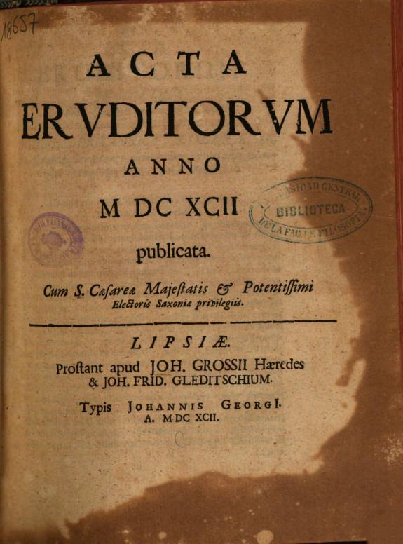 Acta eruditorum : anno ... publicata ‐ [Año 1692]