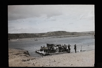 - Barca que cruza el río Guadiana junto a los municipios de Lobón y Montijo, transportando coches, caballos y hombres