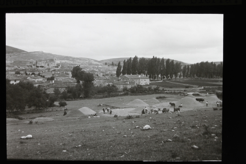 - Vista de la localidad de Quintanilla de Sobre Sierra con personas y animales en las eras