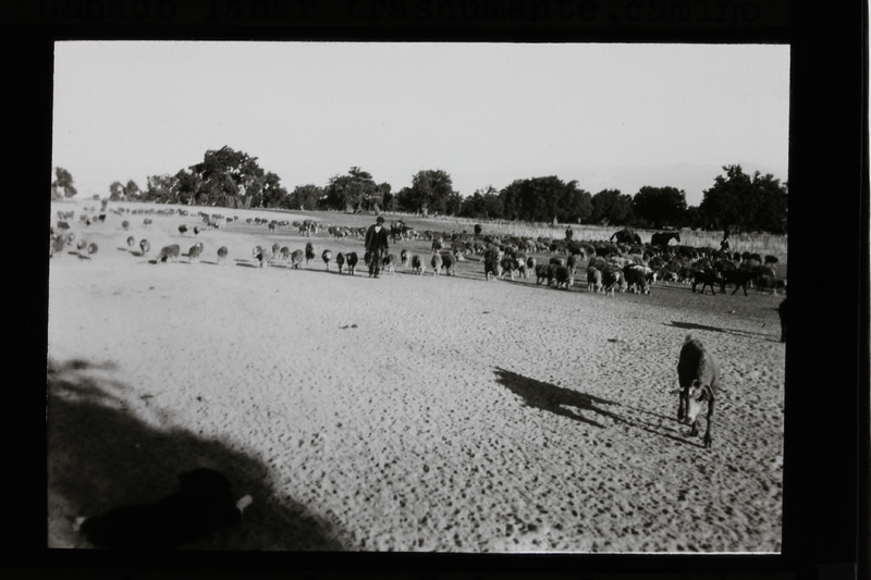 [CÁCERES. Navalmoral de la Mata. Ganado lanar trashumante, camino por la cañada a las dehesas de Extremadura]