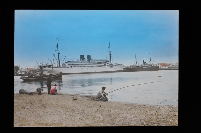 - Vista del puerto de Cádiz con personas pescando y distintos tipos de barcos