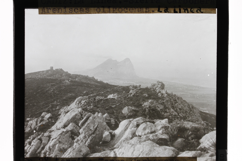 [CÁDIZ. La Línea. Sierra Carbonera Areniscas oligocenas. La Línea. En 2º. Término Torre Carbonera al fondo el Peñón de Gibraltar]