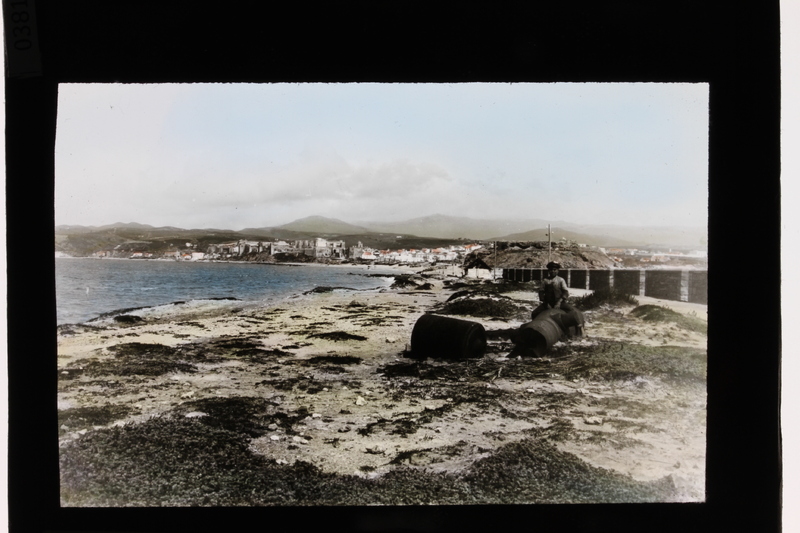 - Hombre sentado sobre un bidón en Punta Paloma con la localidad de Tarifa, Cádiz, al fondo