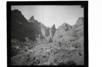 - Montañas con algunas viviendas desperdigadas en las islas Canarias