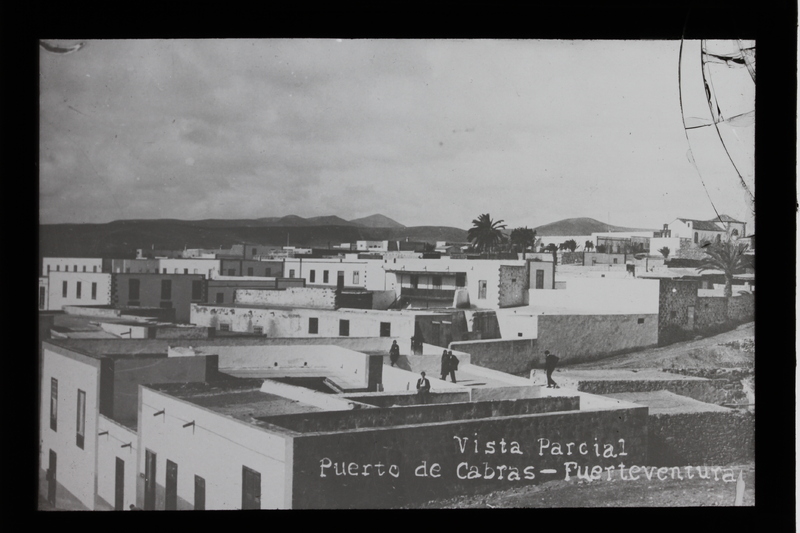 - Título en la tira mecanografiada en el borde superior: "PUERTO DE CABRAS. FUERTEVENTURA"