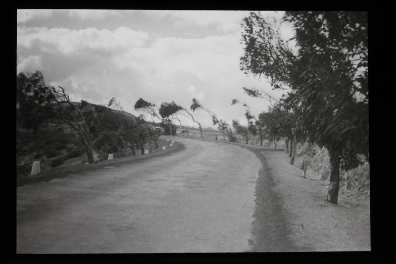 - Carretera bordeada por árboles inclinados por efecto de los vientos alisios en Gran Canaria