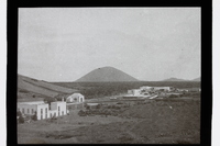 - Viviendas y volcán en la isla de Lanzarote, Canarias