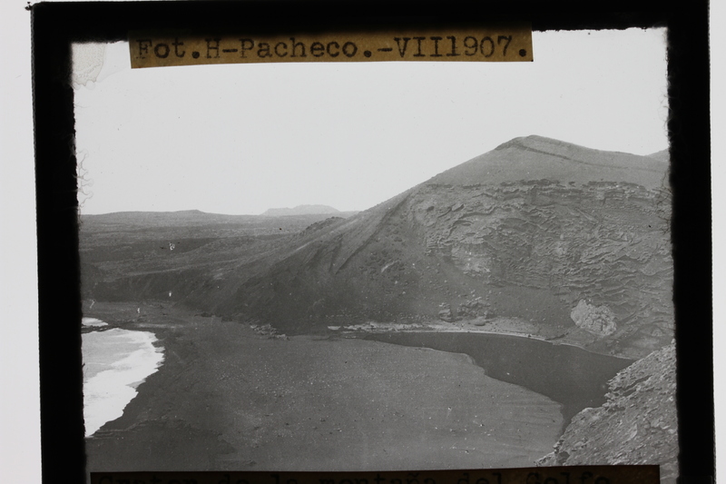[Cráter de la montaña del Golfo erosionada e invadida por el mar. (Lanzarote). Fot. H-Pacheco.-VIII 1907]