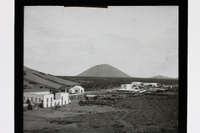 - Viviendas y volcán en la isla de Lanzarote, Canarias
