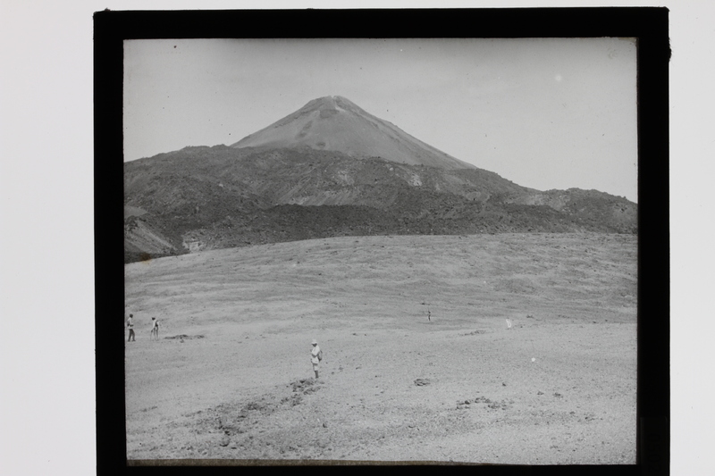 - Varios hombres en una planicie donde se ve el volcán del Teide en la isla de Tenerife, Canarias