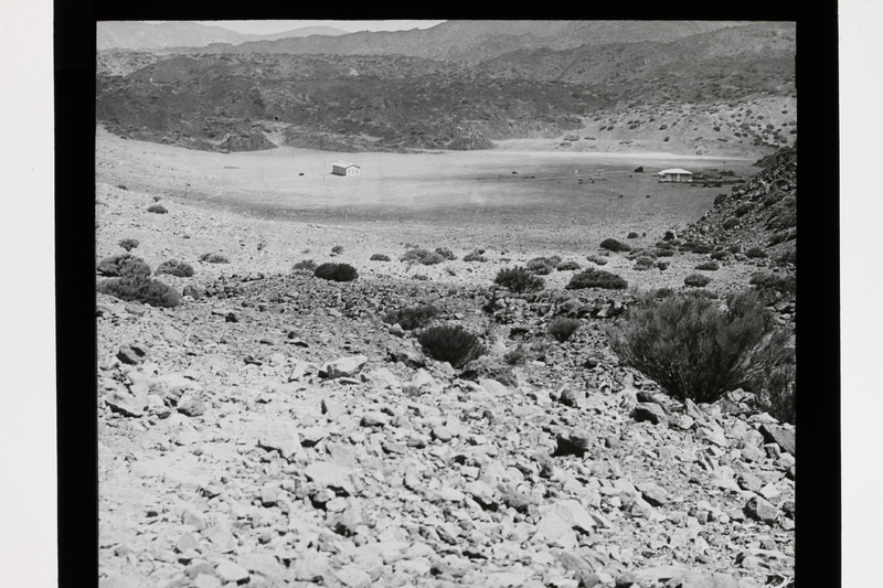 - Vista de la planicie de la Cañada de la Grieta en la isla de Tenerife, Canarias, donde se ven dos edificaciones del observatorio meteorológico