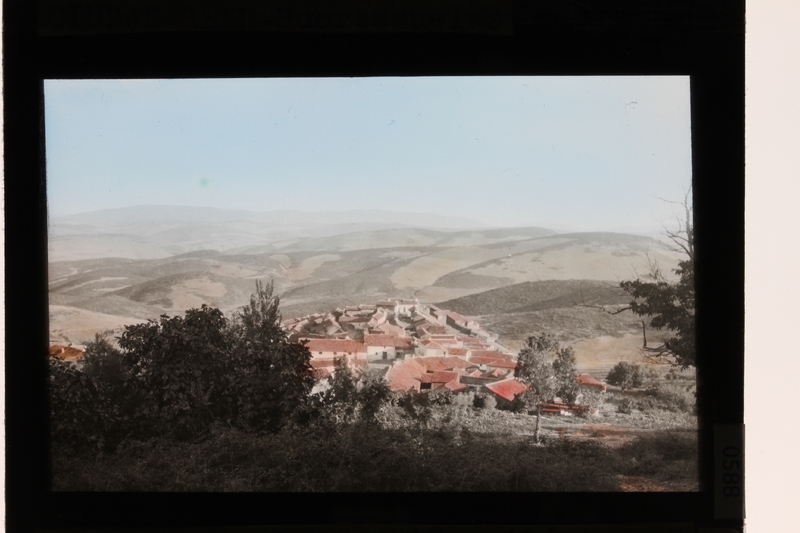 [CIUDAD REAL. Huertezuelas. Aspecto de la campiña silúrica al fondo la atalaya de Calzada]