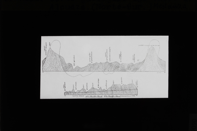 - Fotografía del dibujo del corte geológico del valle de Alcudia, del Morrón de los Pájaros a Solana del Pino, y del rio Montoro