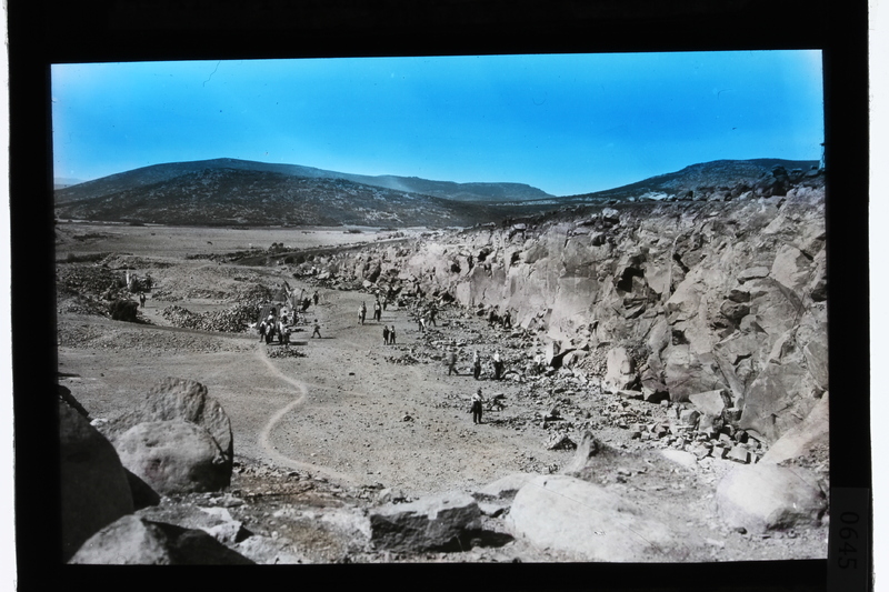 - Hombres en la cantera de basalto en la colada del volcán de Morrón de Villamayor, Ciudad Real