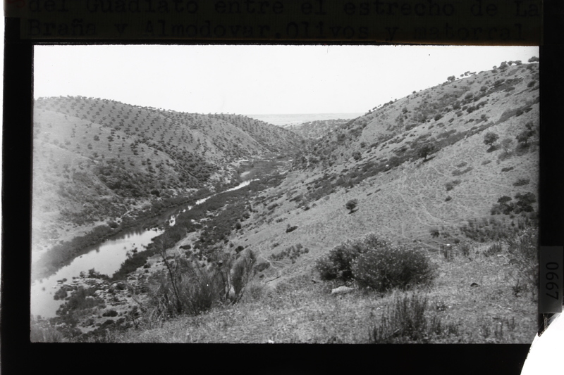 [CÓRDOBA. Almodóvar del Río. El Valle del Guadiato entre el estrecho de La Braña y Almodóvar. Olivos y matorral muy claro al fondo el valle del Guadalquivir]