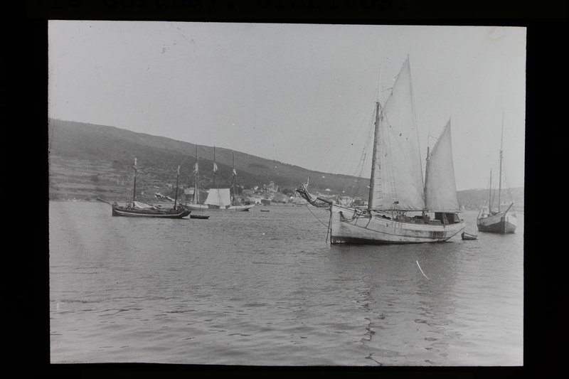 - Barcos de vela frente a la costa en la ría de Corcubión, La Coruña