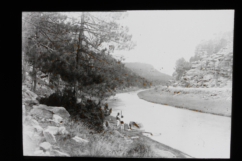 - Dos hombres a orillas del río Cabriel a su paso por Pajaroncillo, Cuenca