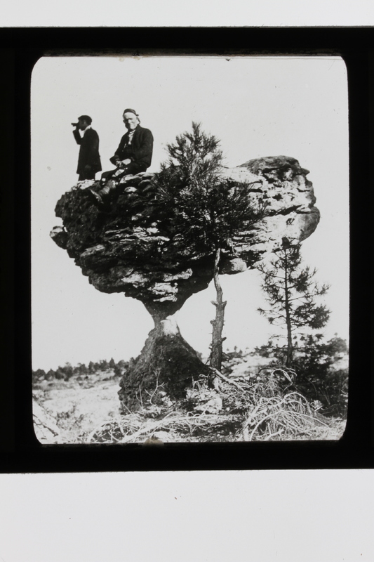 - Dos hombres sobre una de las formaciones rocosas de la Ciudad Encantada de Cuenca