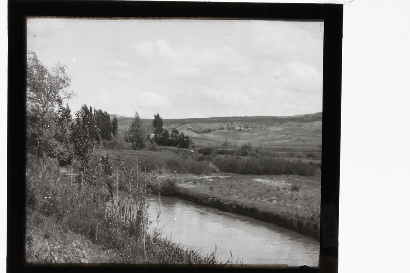 - Altiplanicie del río Gallo con el río en primer plano y castillo de Molina de Aragón al fondo