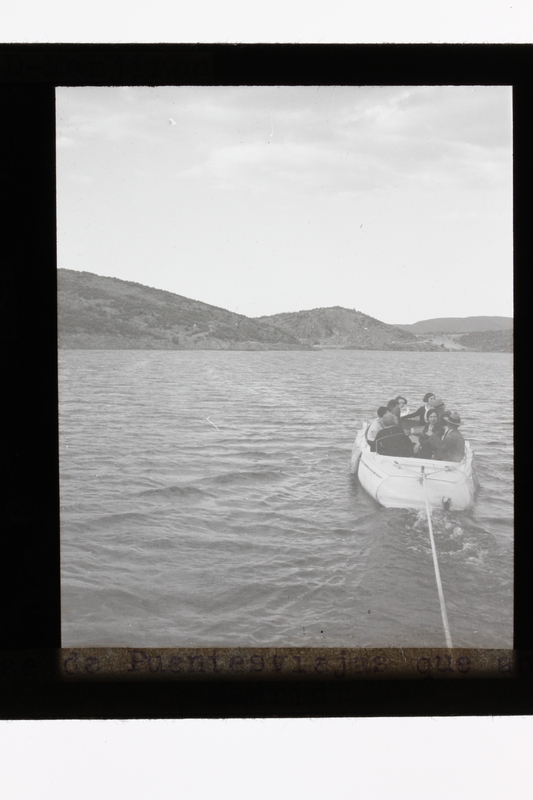 - Un grupo de hombres y mujeres en una barca en el embalse de Puentes Viejas, Madrid