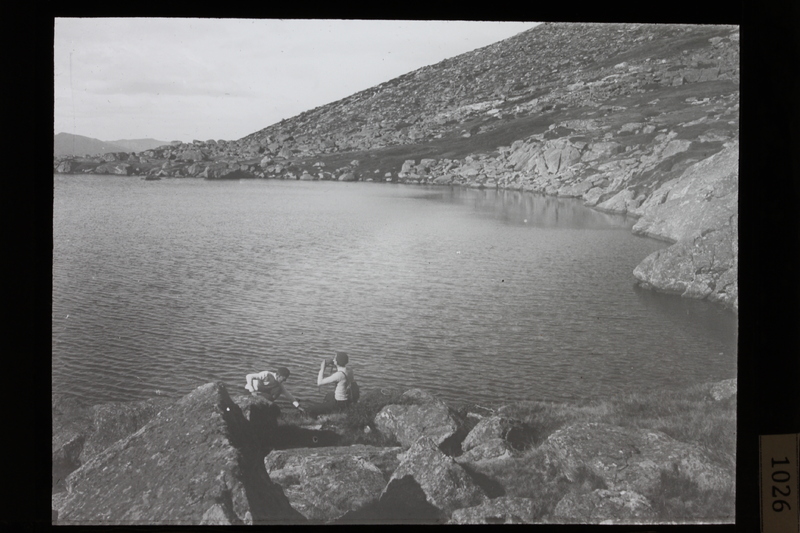 - Dos hombres en la orilla de la laguna de Peñalara en la sierra de Guadarrama, Madrid