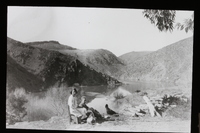 - Un niño y una niña sentados junto a un embalse del río Lozoya