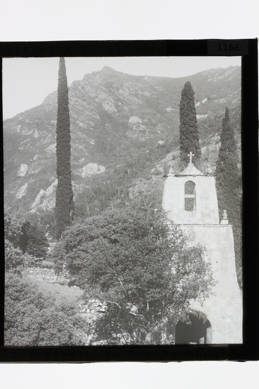 - Título tomado de la tira mecanografiada en los bordes superior e inferior. Nota manuscrita al verso: "La portería de las Batuecas (Salamanca)"