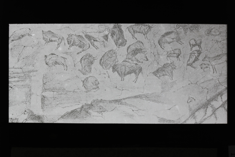 - Fotografía de un dibujo del techo de la gran sala de la cueva de Altamira, Santillana del Mar