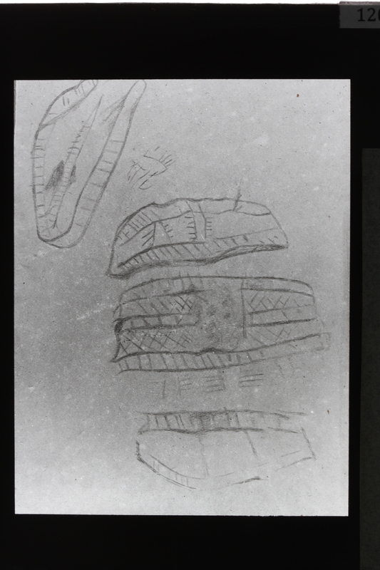 - Fotografía de un dibujo de signos tectiformes de la cueva de Altamira, Santillana del Mar